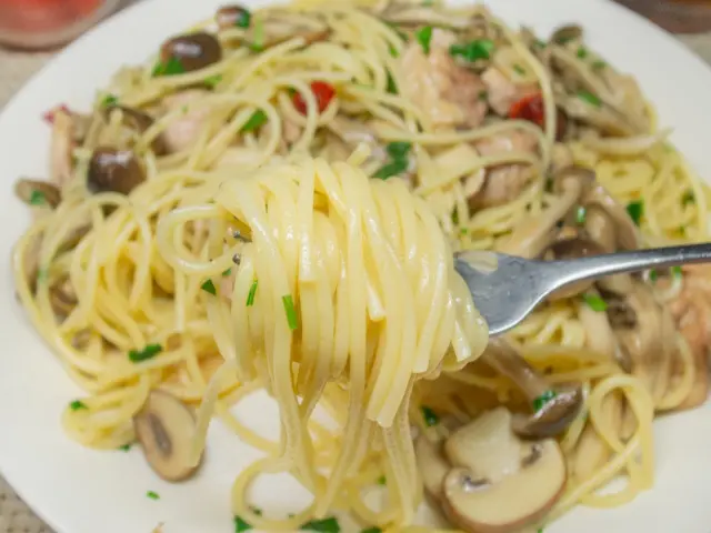 筋トレにおススメな食事、鶏むね肉とキノコのクリームパスタ - 魚料理と簡単レシピ。