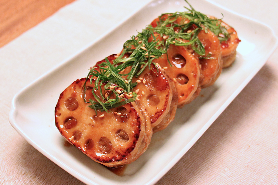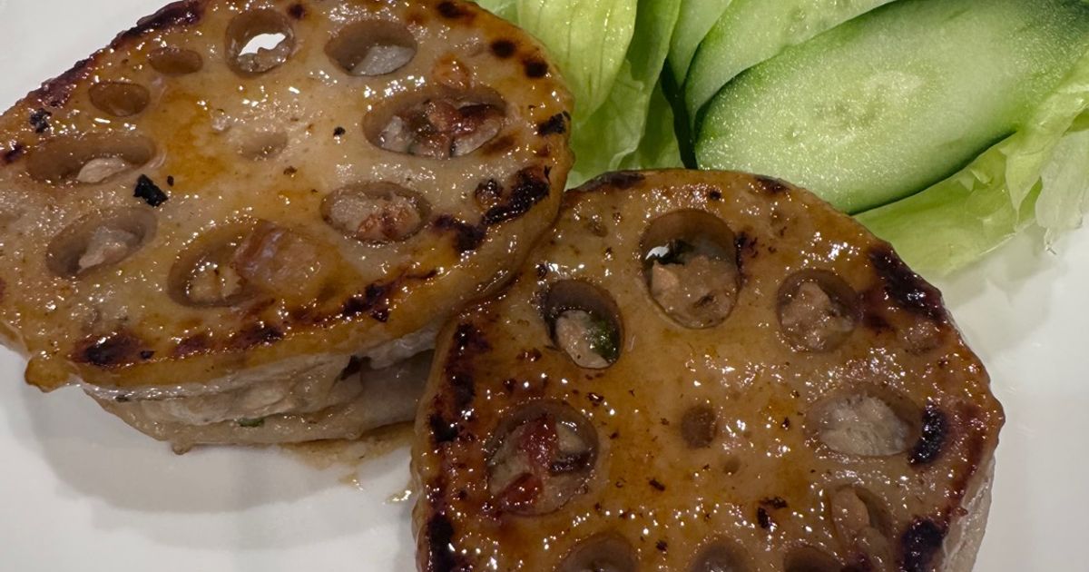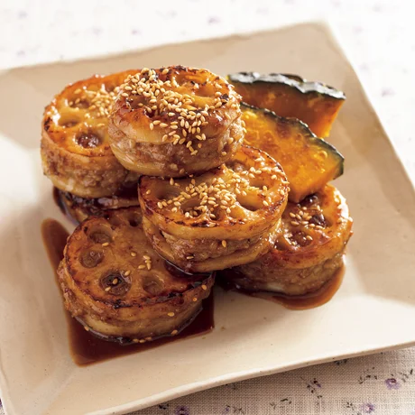 蓮根とひき肉の挟み甘酢照り焼き おすすめ。
