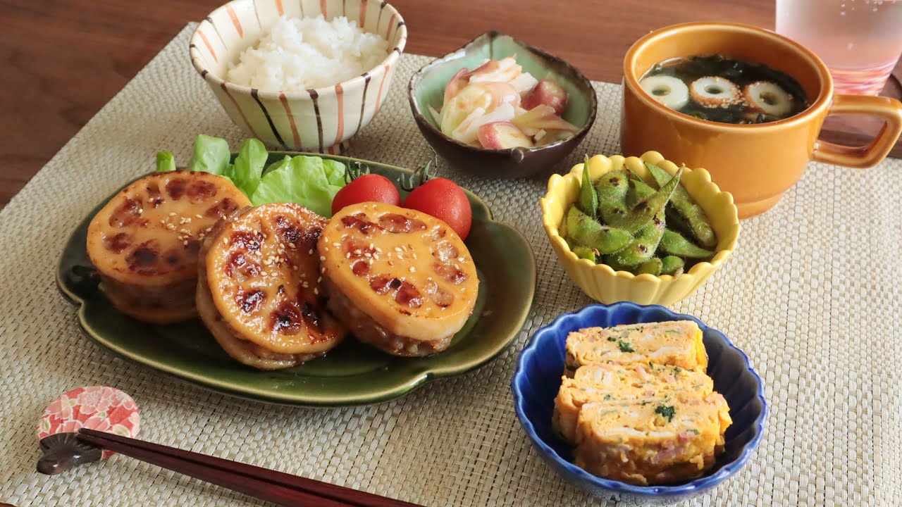 vol.249 ご飯がススム!お酒もススム! 失敗しない!挽き肉に大葉と生姜をたっぷり!甘辛照り焼きタレで仕上げる「蓮根のはさみ焼き」レシピGrilled lotus root sandwich。
