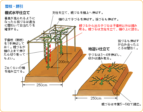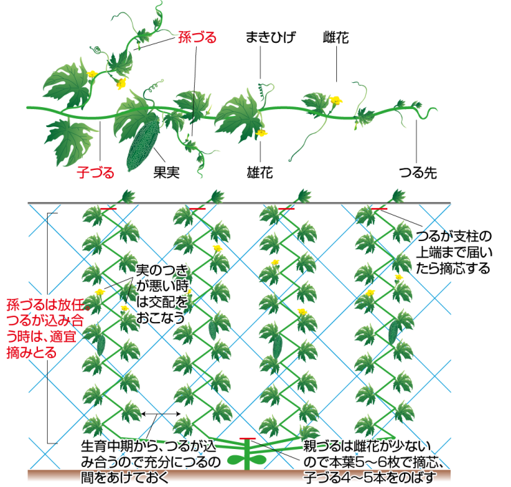 農家が教えるゴーヤー ニガウリ の育て方 収量アップのための摘心方法を図解!マイナビ農業。