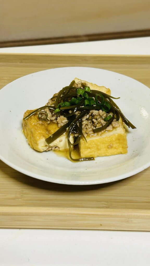 厚揚げのとろとろ鶏ひき肉あんかけ。