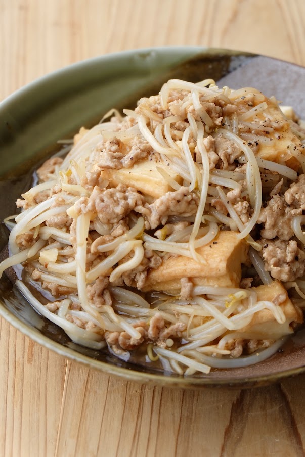 節約メニュー!ひき肉ともやしのトロトロあんかけ厚揚げ。