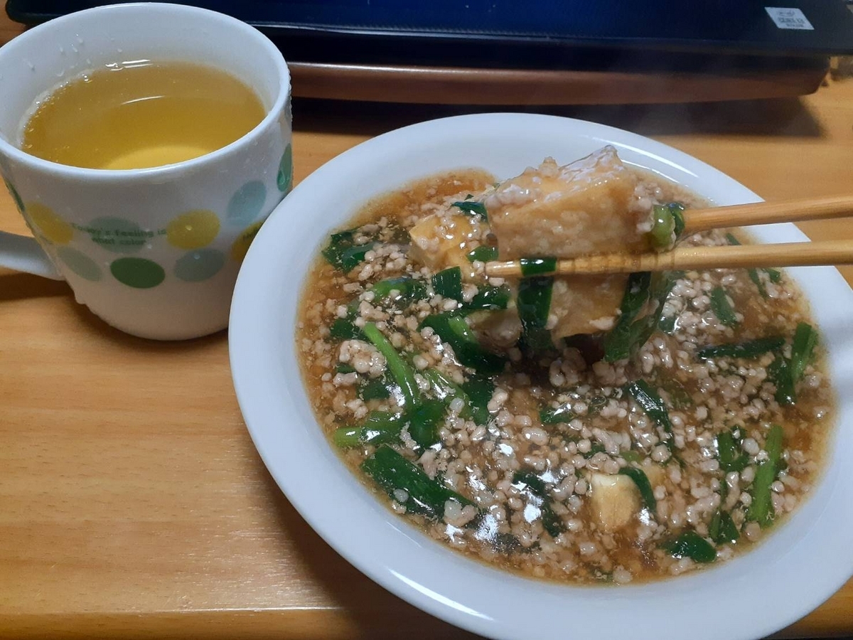 厚揚げ麻婆 焼肉のタレで豚ひき肉の旨み染みるあんかけレシピ♪。