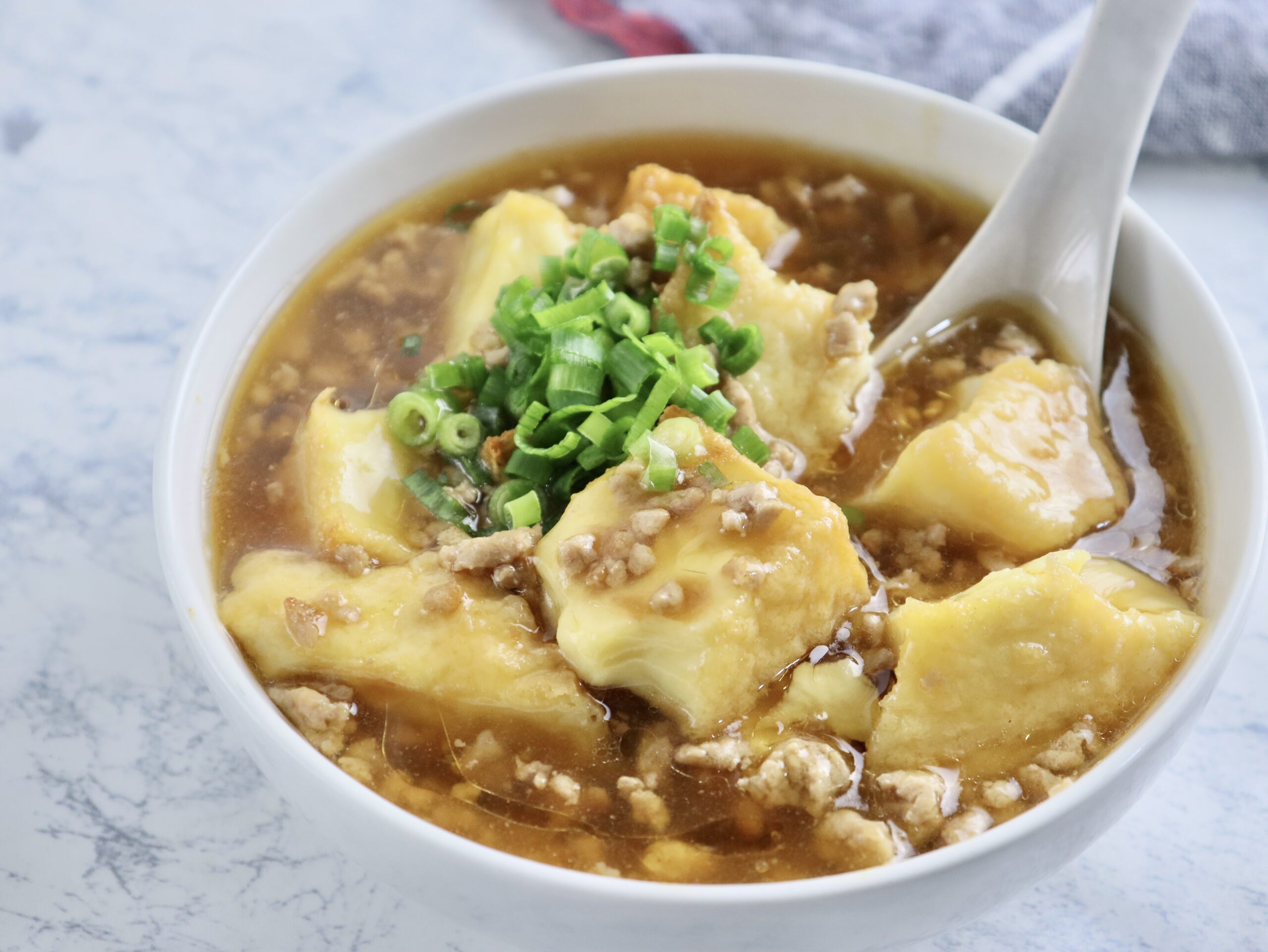 材料費130円! 包丁まな板いらずで10分でできる!超簡単なのにめちゃ旨!『豚ひき肉と厚揚げのとろとろあんかけ』の作り方 - てぬキッチン。