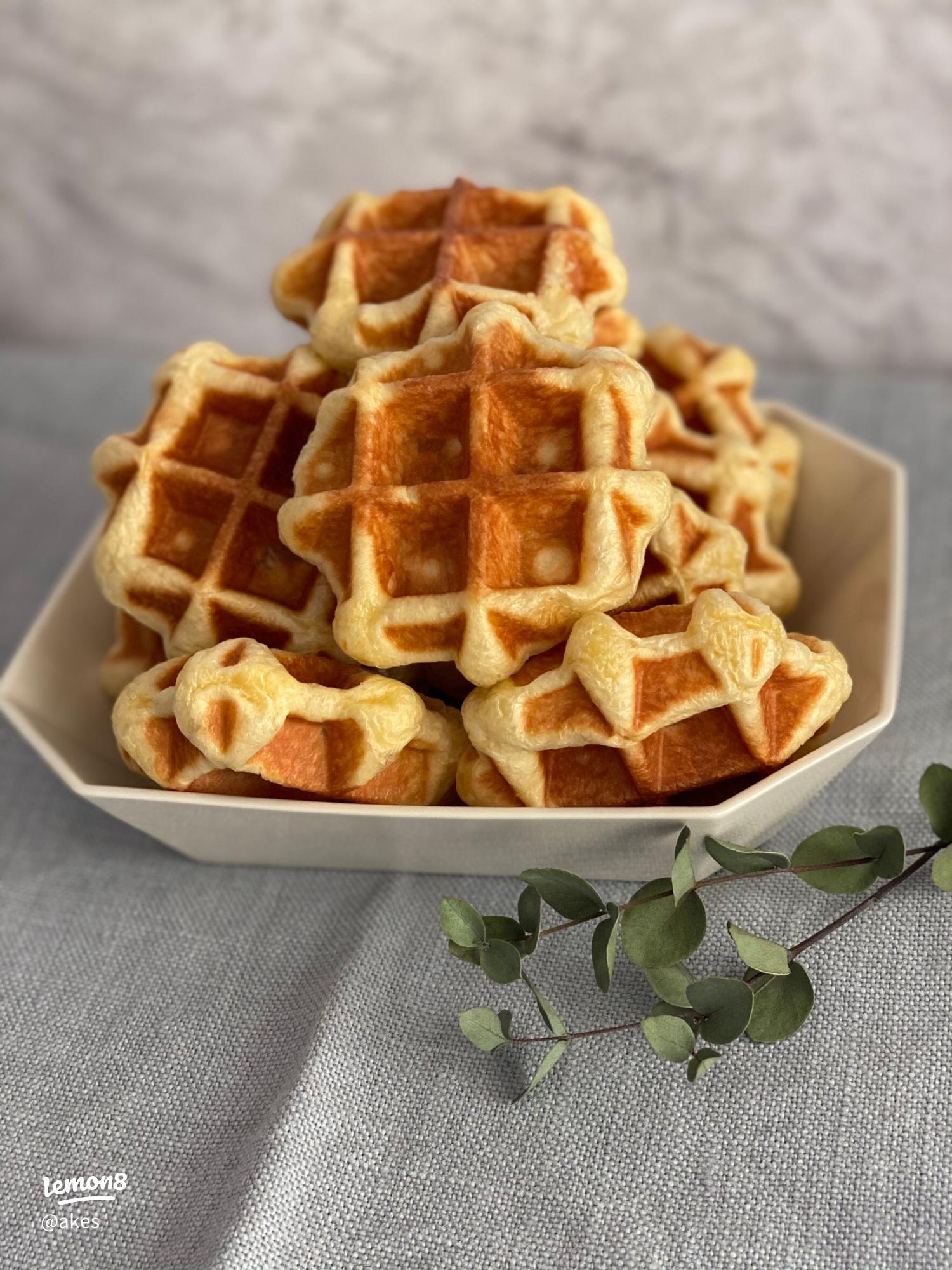 マネケン風ワッフル▶︎ @gk_hiroka 寒くなってくると、こうゆう系のおやつが食べたくなります♡ マネケンのワッフル が大好きなんだけど、なかなか買いに行ける場所にないのでこうやって作っては欲を満たしてます。笑 発酵させて、バターたっぷりで作るワッフルも捨てが。
