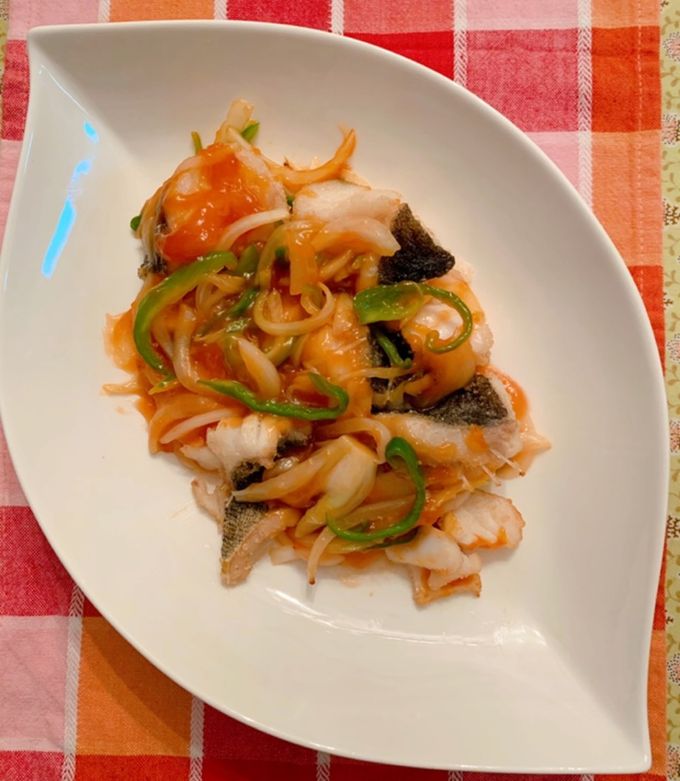 思わず食べたくなる♡ 白身魚の甘酢あんかけ。