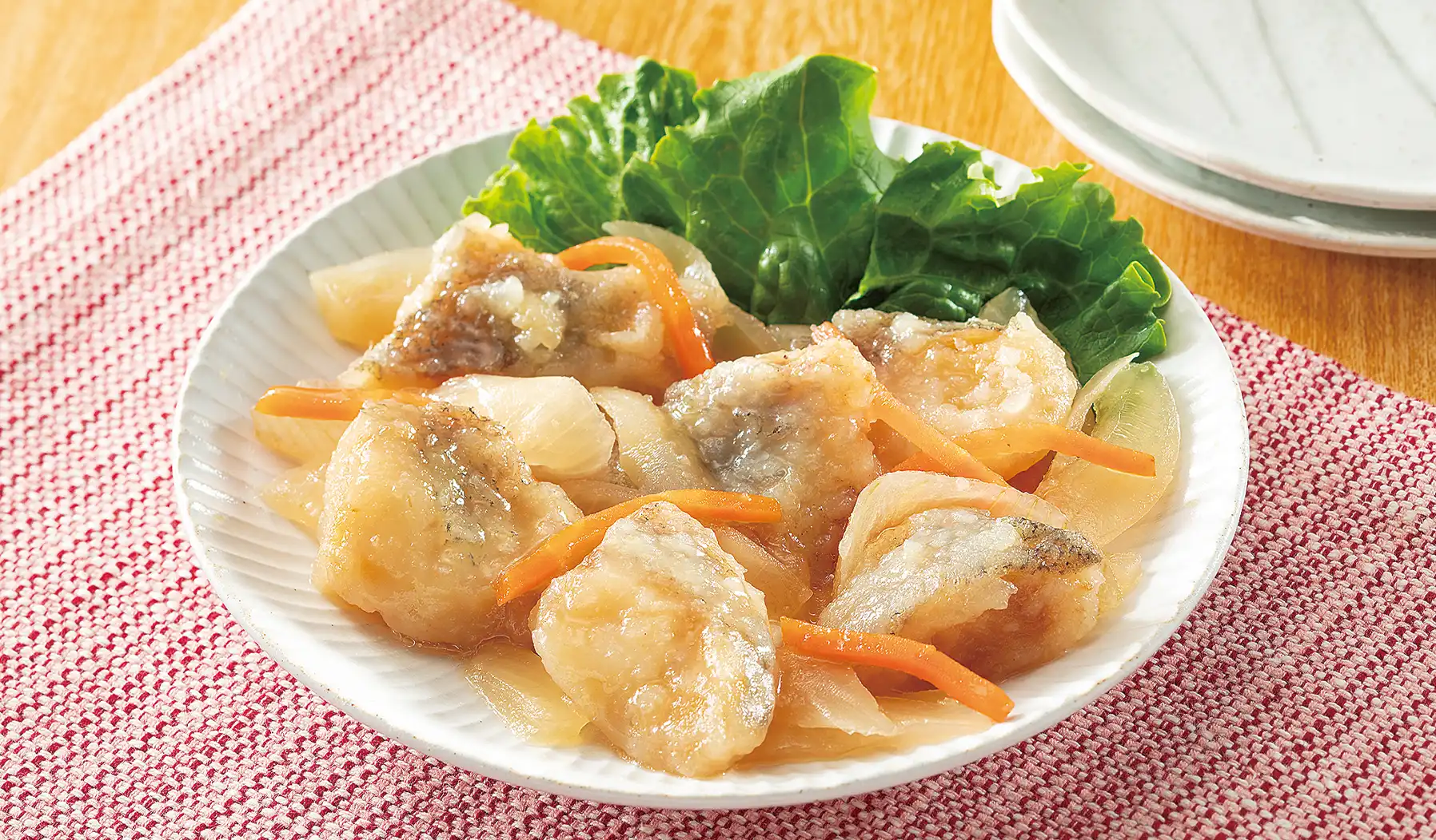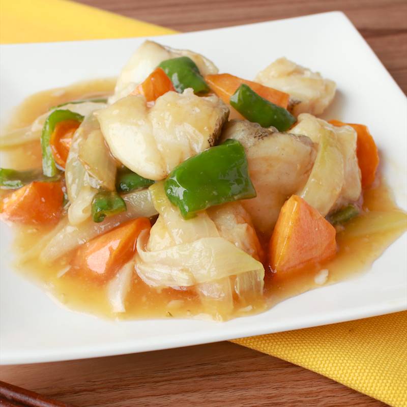 ふわふわ食感! 白身魚の甘酢あんかけ。