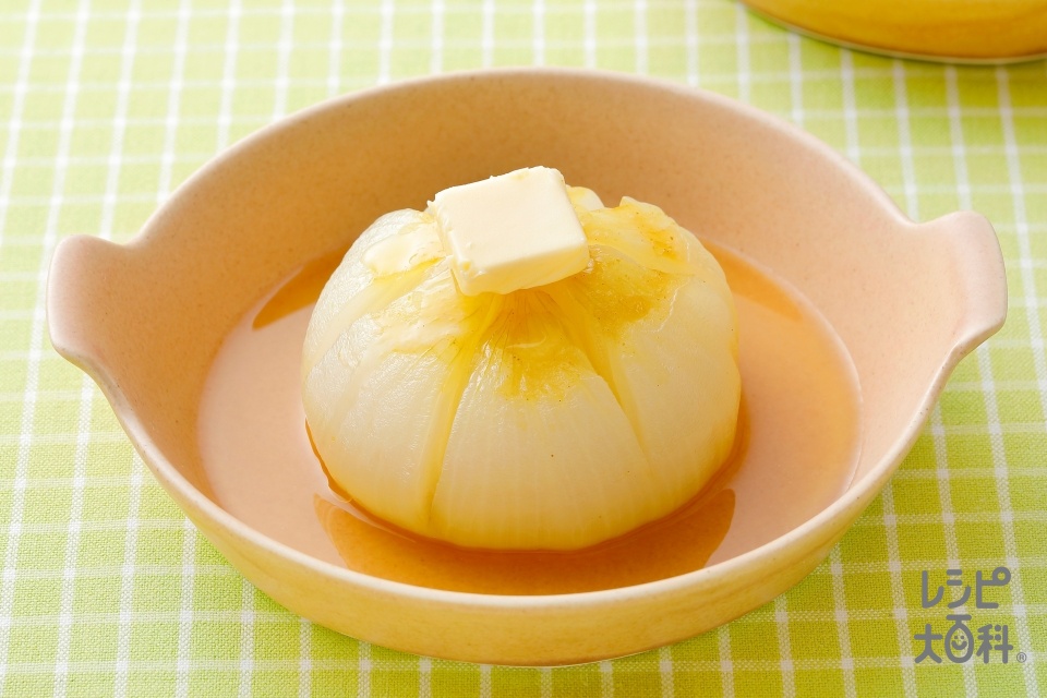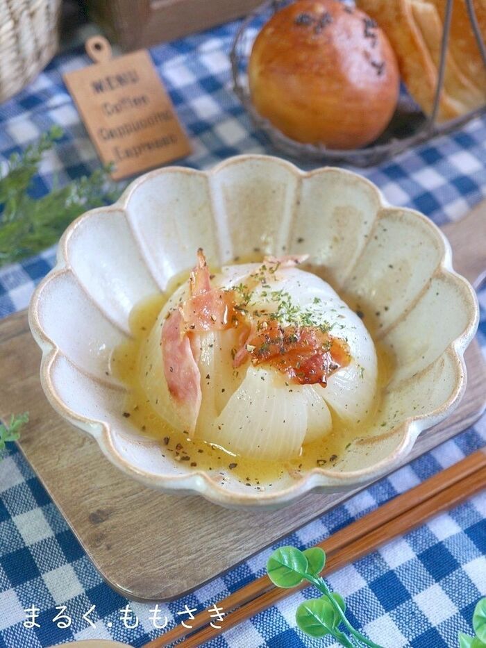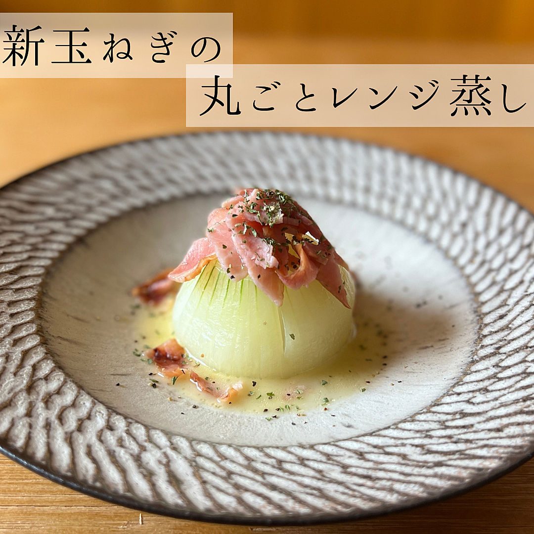 新玉ねぎの丸ごとレンジ蒸し ベーコンコンソメバター。