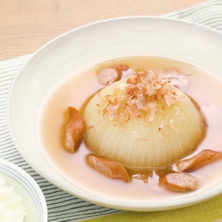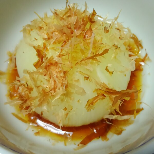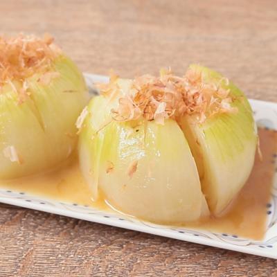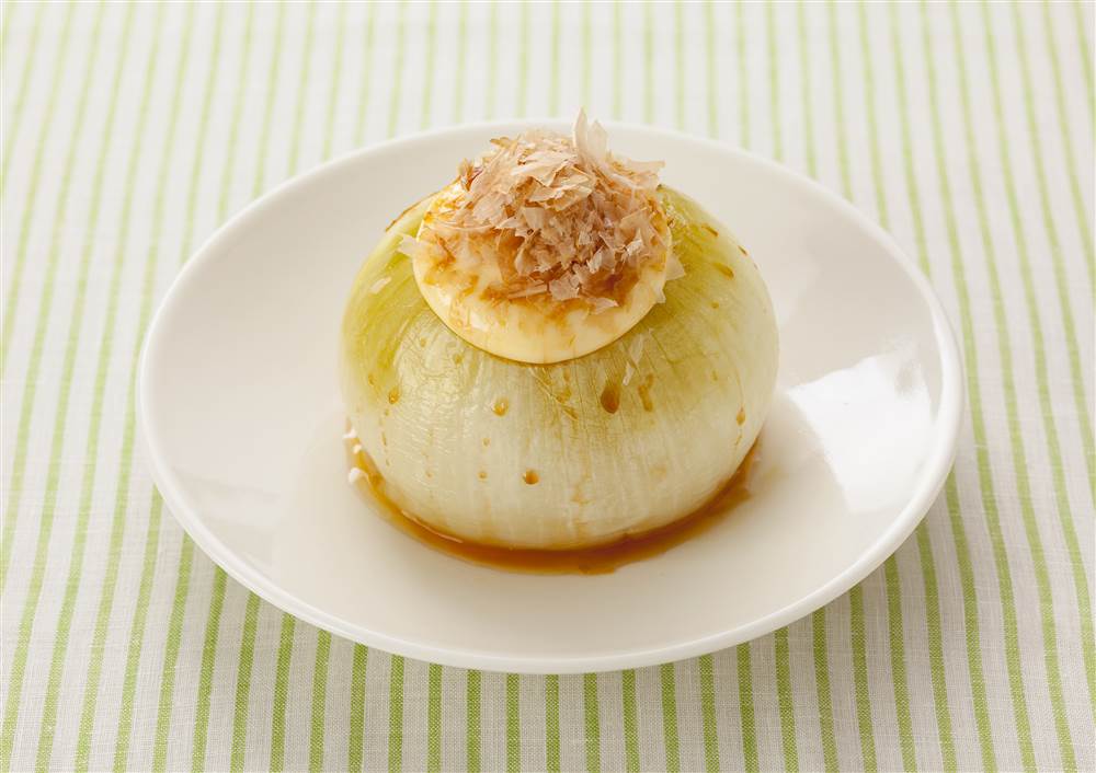 丸ごと玉ねぎのおかかバタポン蒸し。
