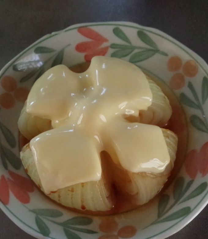 レンジでチン!丸ごと新玉ねぎのめんつゆチーズ。