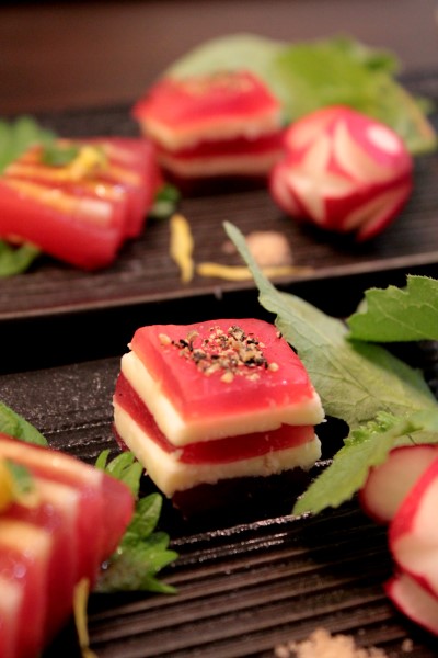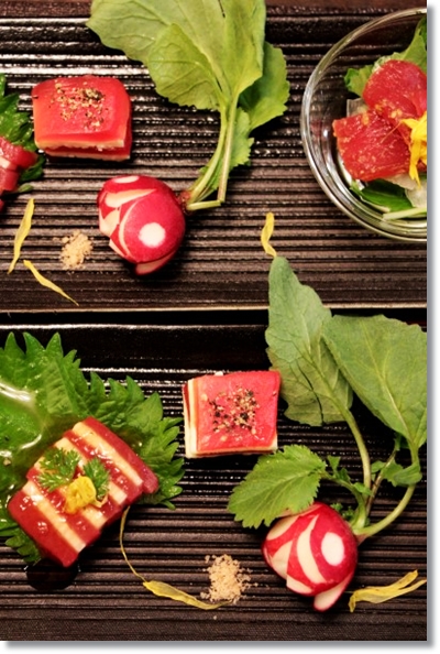 鮪のサクで酒肴3種類と、薫香醤油に江戸の調味料煎り酒 いりざけ 。 : スパイスと薬膳と。