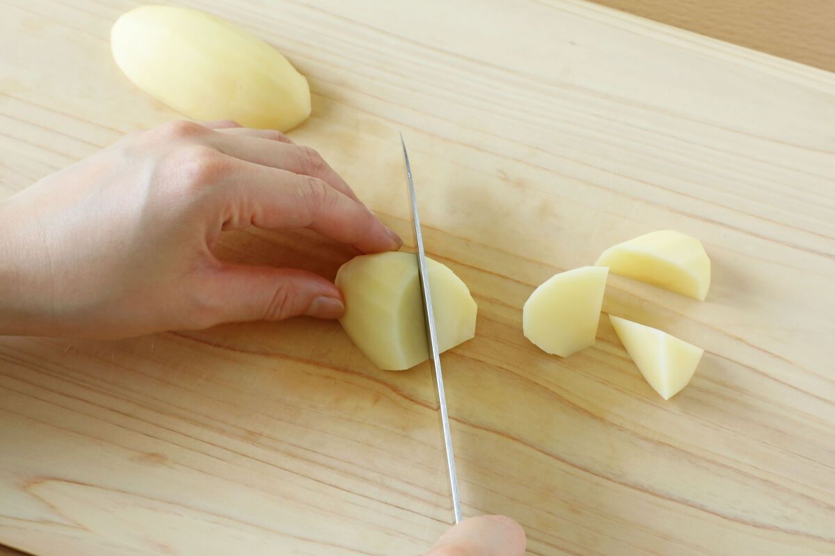 じゃがいもを乱切りにする方法。カレーのじゃがいもの切り方。やまでら くみこ のレシピ。