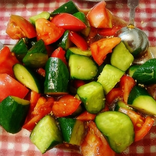 トマトときゅうりの旨塩ポン酢 和えるだけ!簡単さっぱり副菜。