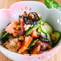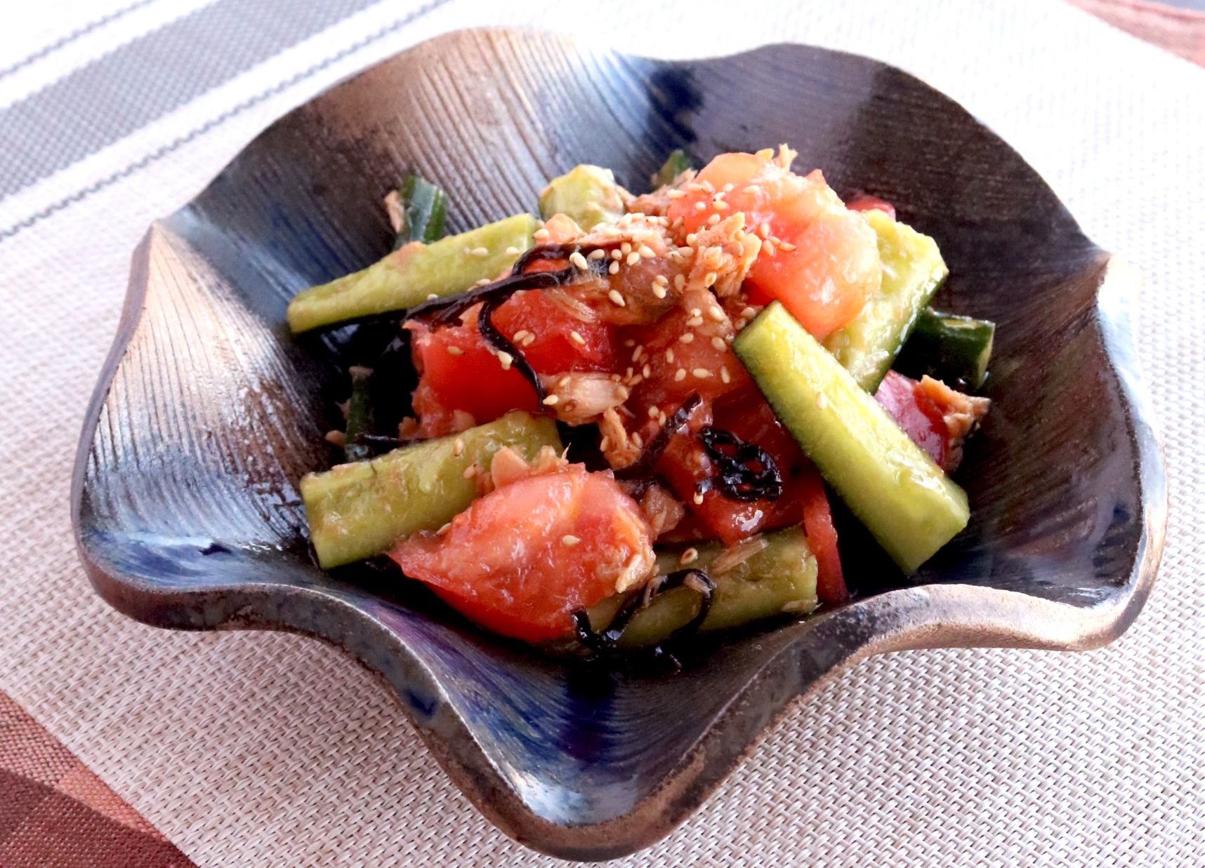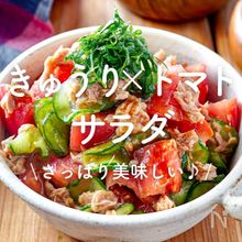 *たたききゅうりとトマトとツナの塩昆布サラダ*。