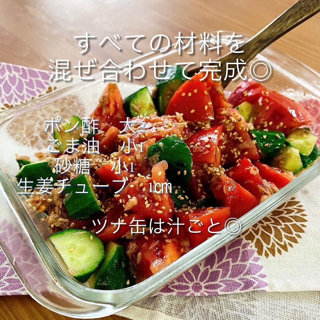 きゅうりとトマトとツナの塩昆布サラダ 夏野菜で和の副菜♬︎。