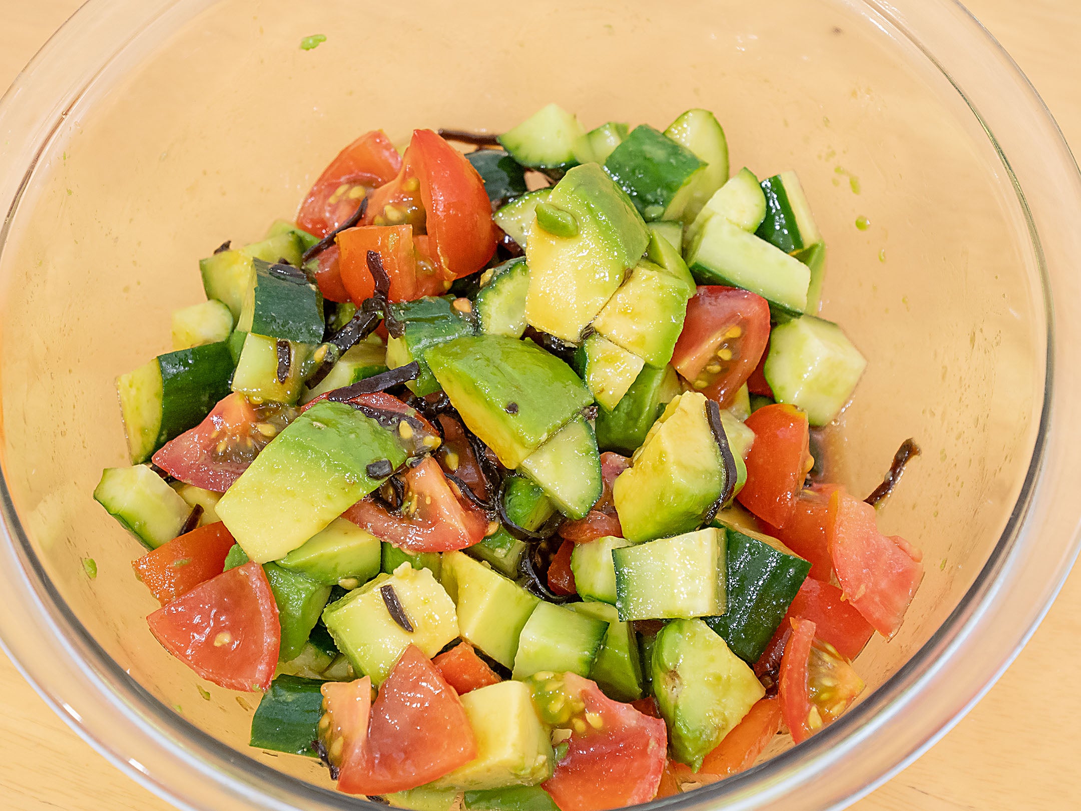 アボカドとトマトきゅうりの塩昆布和え ^O^。