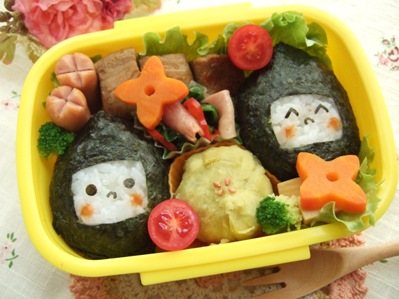 ふたごのお顔おにぎり – お弁当の詰め方と盛り付けのコツ – ピクニックにもおすすめOH!BENTO – おこさま弁当の記録とレシピのメモ。
