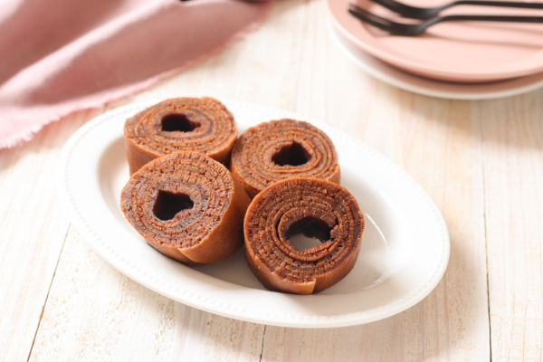 米粉のチョコバームクーヘン たまご焼きフライパンでおやつ。