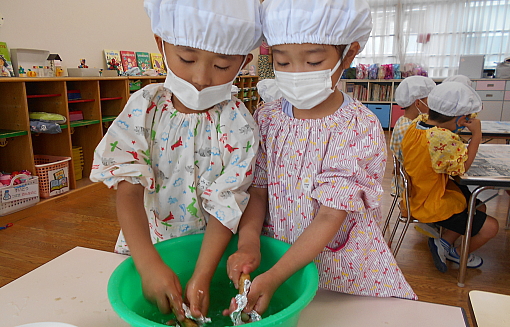 栄養士が考えた幼児食レシピ「ぱる☆キッズごはん」11月号きのこを加えてうまみアップ!「きんぴらごぼう」生活協同組合 パルシステム東京。