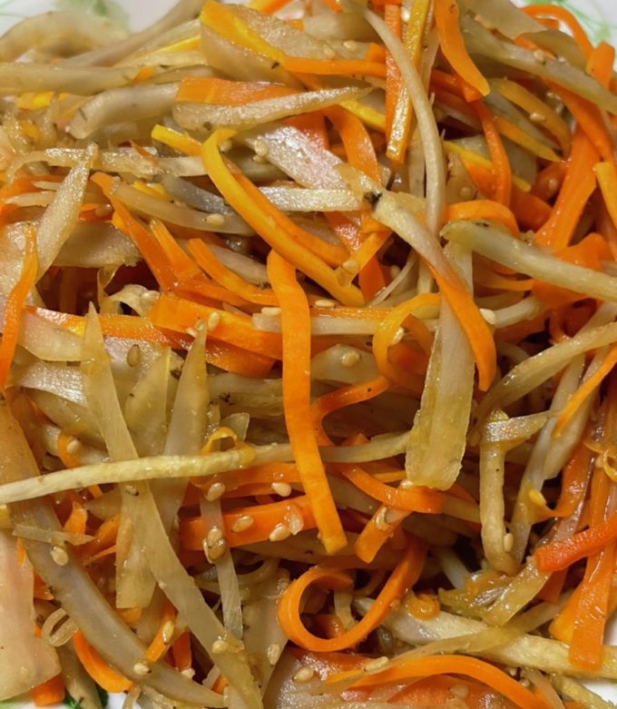 基本きんぴらごぼう!低温調理で甘さアップ!子供も喜ぶ食べやすさまま栄養士☆沖縄料理キッチンLife。