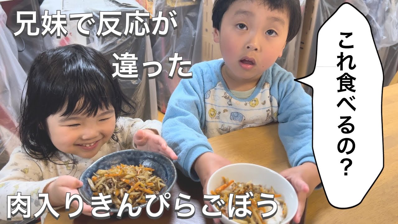 苦戦しながら掘ったゴボウで肉入りきんぴらごぼうを作ってみた!子供達の反応は兄妹で全く違った。