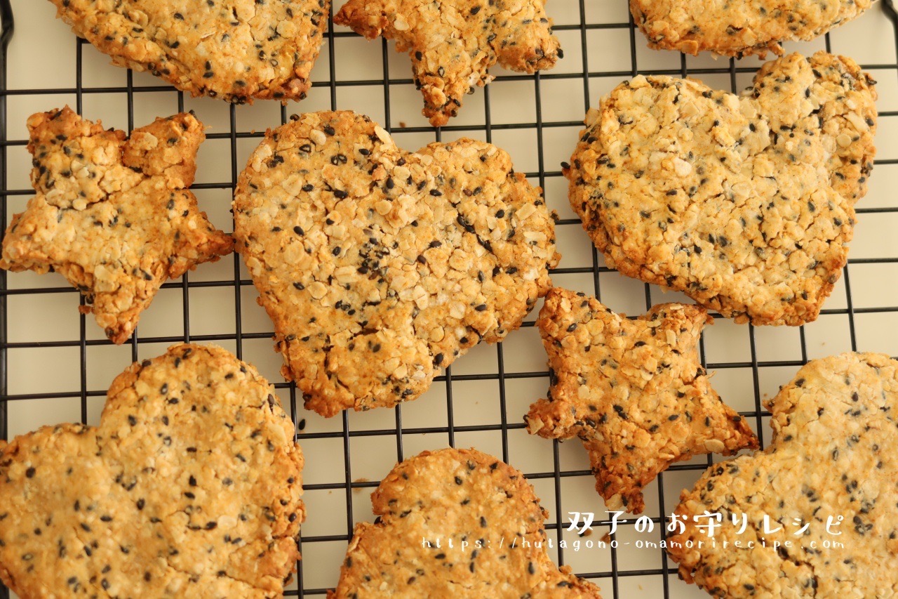 はちみつオートミール米粉クッキーのレシピ卵・乳・小麦・砂糖なし双子のお守りレシピ。