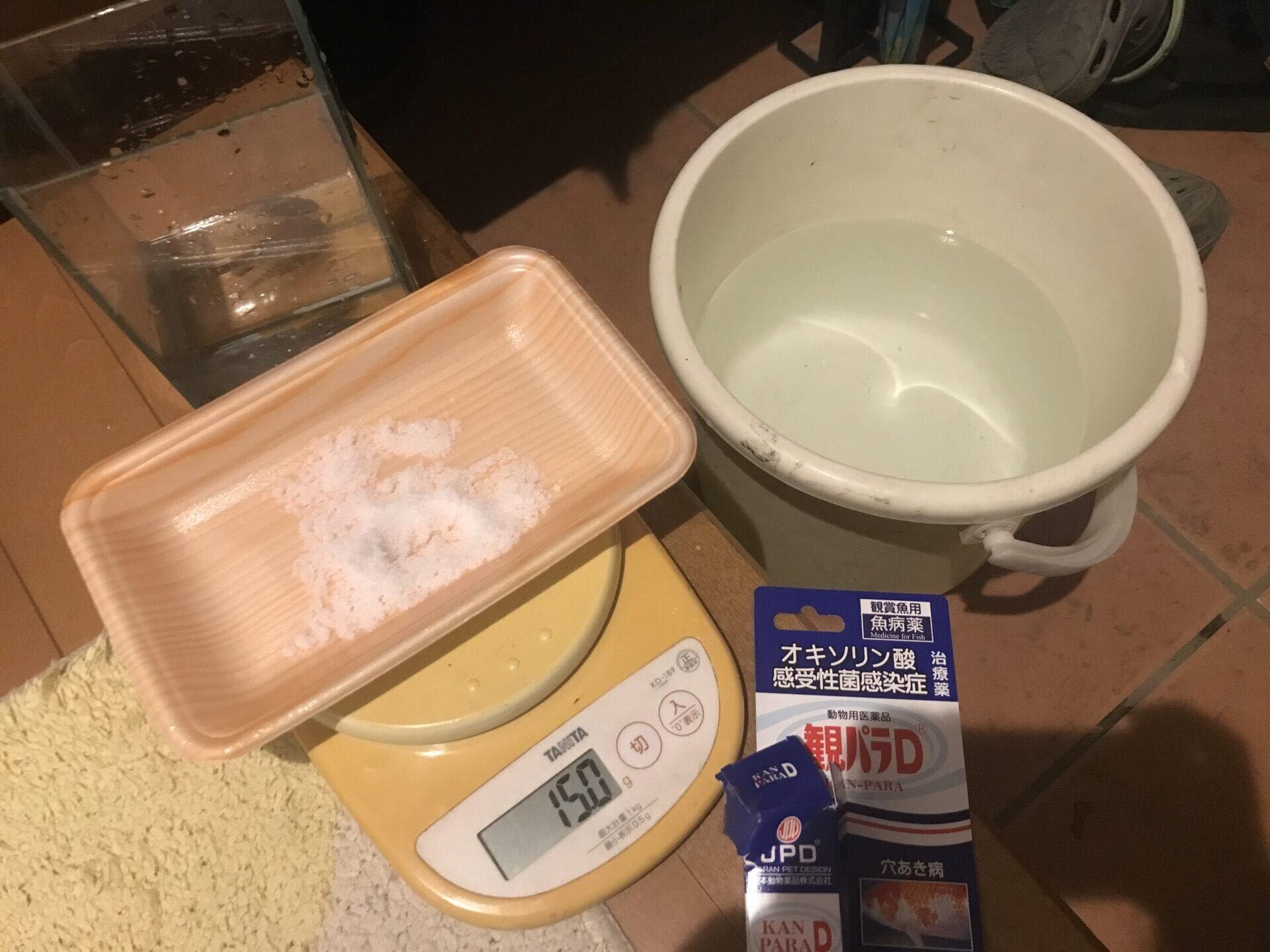 金魚の塩浴の作り方をわかりやすく解説 最初は塩の量にビビります- きんぎょりうむ。