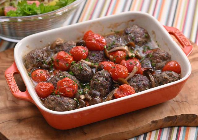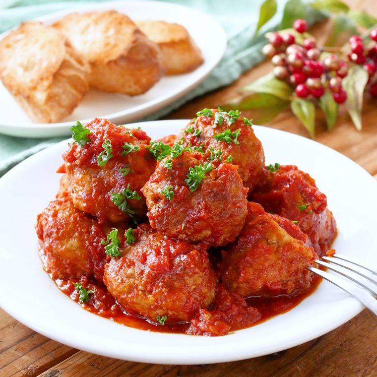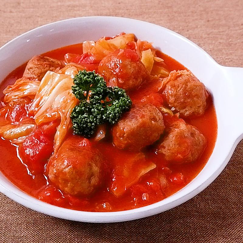 豚ひき肉でジューシーに。ミートボールのトマト煮込み。