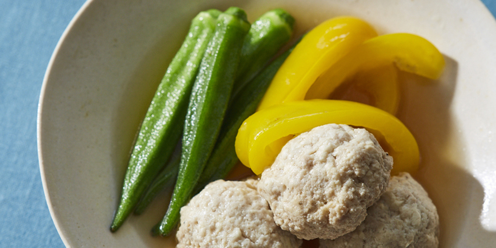 豆腐入りふわふわ肉団子と野菜のさっと煮。