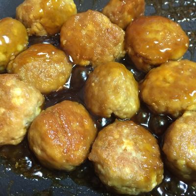 ふわふわのうまうま♪ 豚こまと豆腐の照り焼き肉団子花ぴーのあてレシピ。