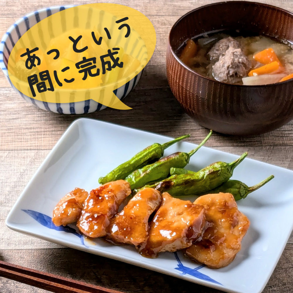 下味冷凍&冷凍ストック術 鶏むね唐揚げ・ぶりの照り焼き・豚つくね編3日分まとめて♪1汁1菜のスピード献立。
