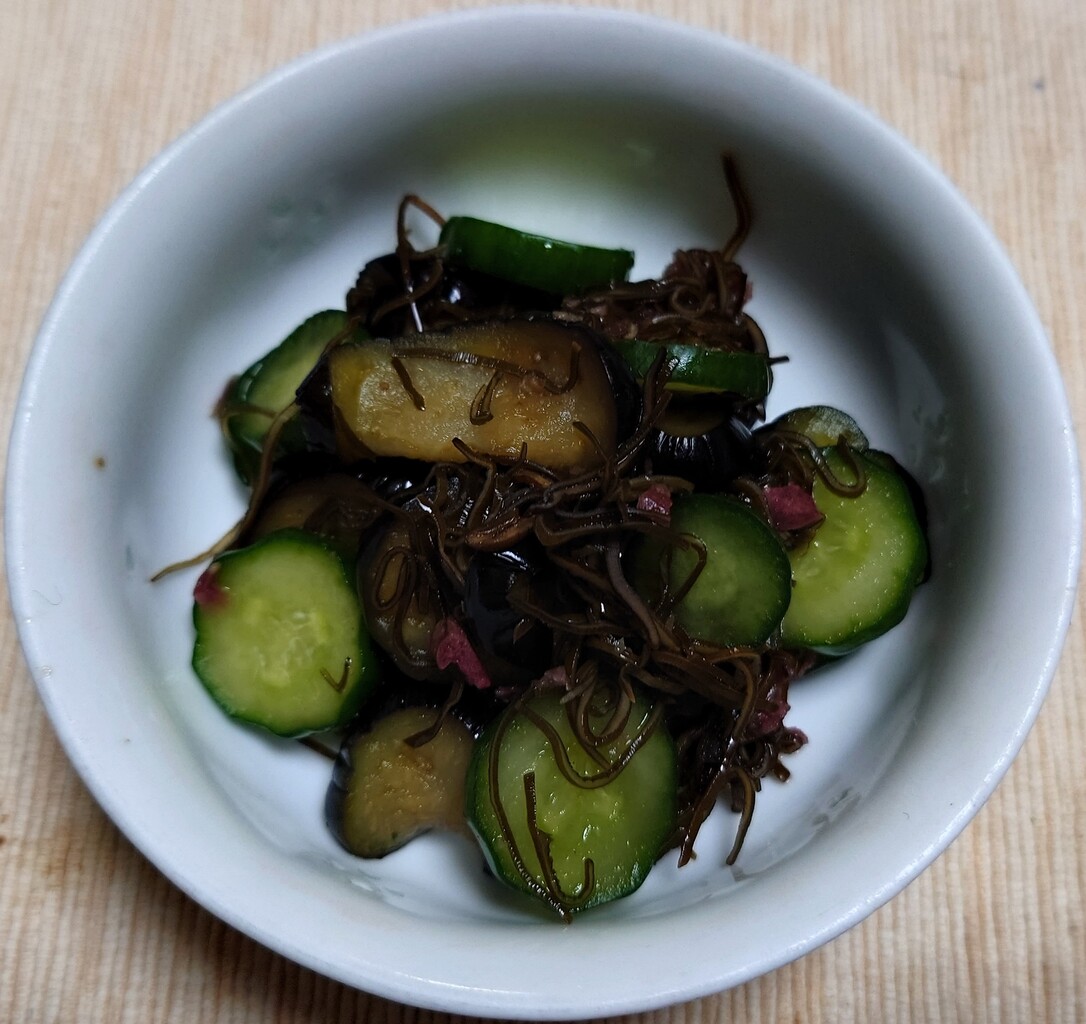 柚子胡椒香る ナスときゅうりの塩昆布和え。