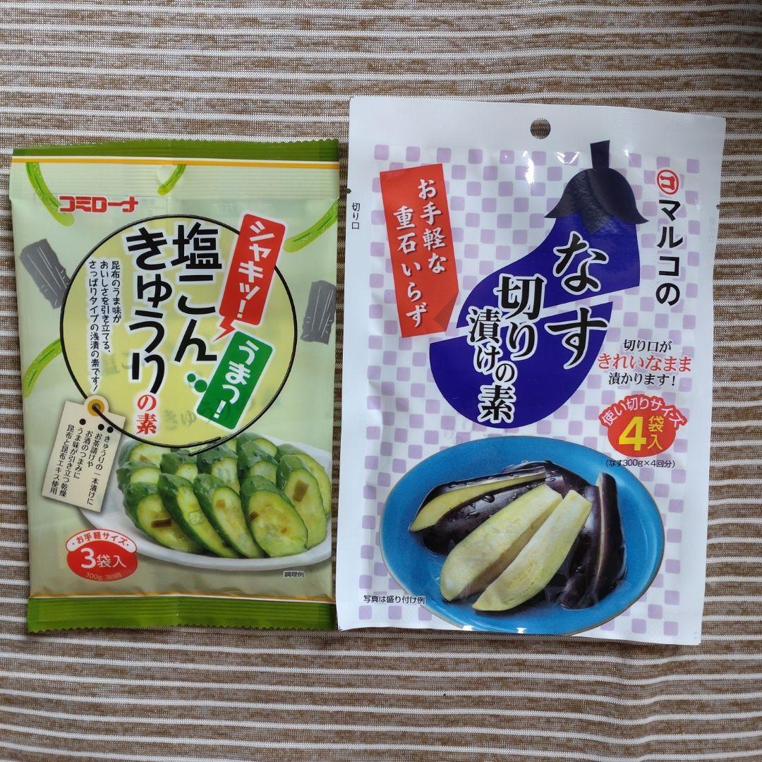 コミローナ塩こんきゅうりの素.マルコなす切り漬けの素 - メルカリ。