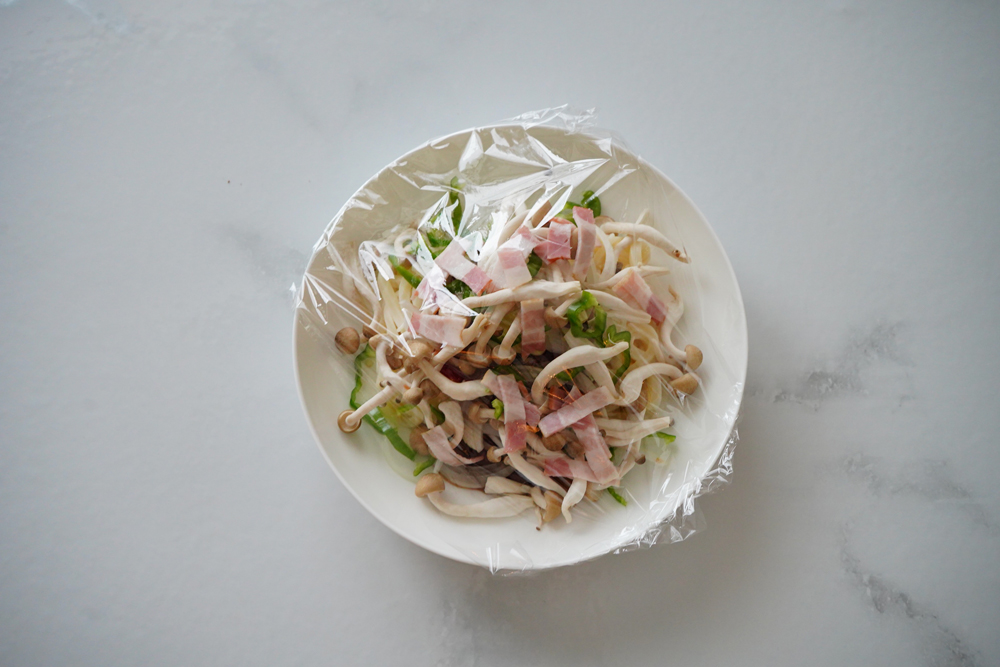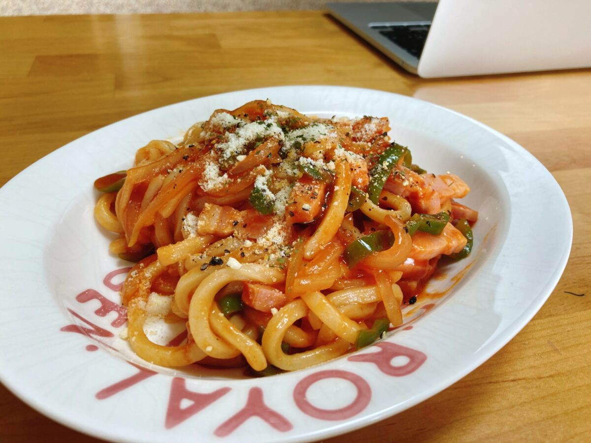 うどんナポリタンの簡単レシピ!レンジで5分で完成。