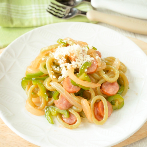 レンジで簡単!おいしいナポリタンうどんレシピ。