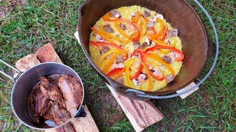 キャンプ飯。ダッチオーブンで超かんたんパエリア。誰でも即席で作れます。