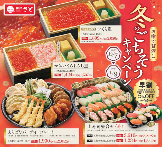 和食さと」で「いくら重」「上寿司盛合せ」がお得!! 年末年始はテイクアウト早割5%オフ - BCN+R。