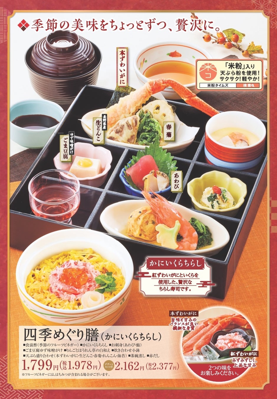 和食さと 冬の味覚 『ずわいがに』 や『いくら』 をった限定メニュー登場!!SRSホールディングス株式会社のプレスリリース。