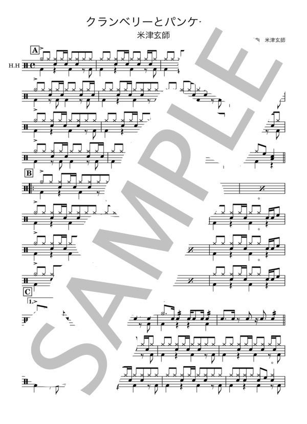 楽譜 クランベリーとパンケーキ米津 玄師ドラム初〜中級- Piascore 楽譜ストア。