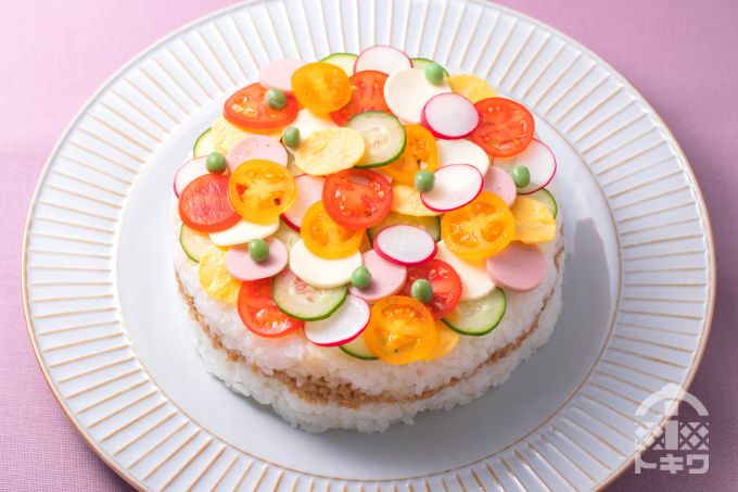もうすぐひな祭り、食卓華やぐ「ちらし寿司ケーキ」をマイパーラーで簡単楽しくアンジェ日々のコラム。