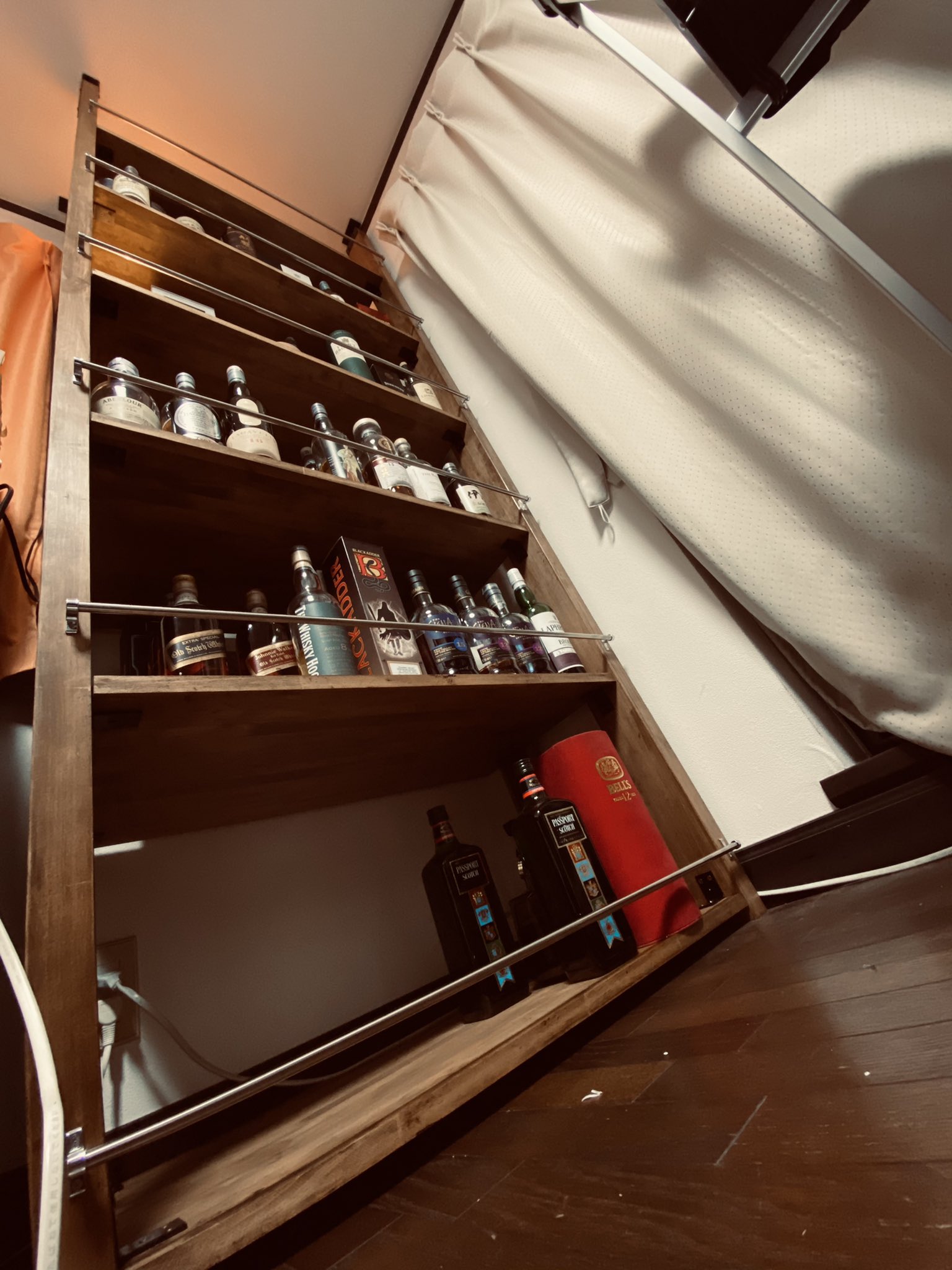 ブラ on X: "酒棚に転倒防止用の鉄パイプを取り付けました。 これでうまくやれば3列いけた!あとはある日突然壁ごとガシャーンってならないことを祈ります。 https:t.co WRzdVFQ4J1"X。
