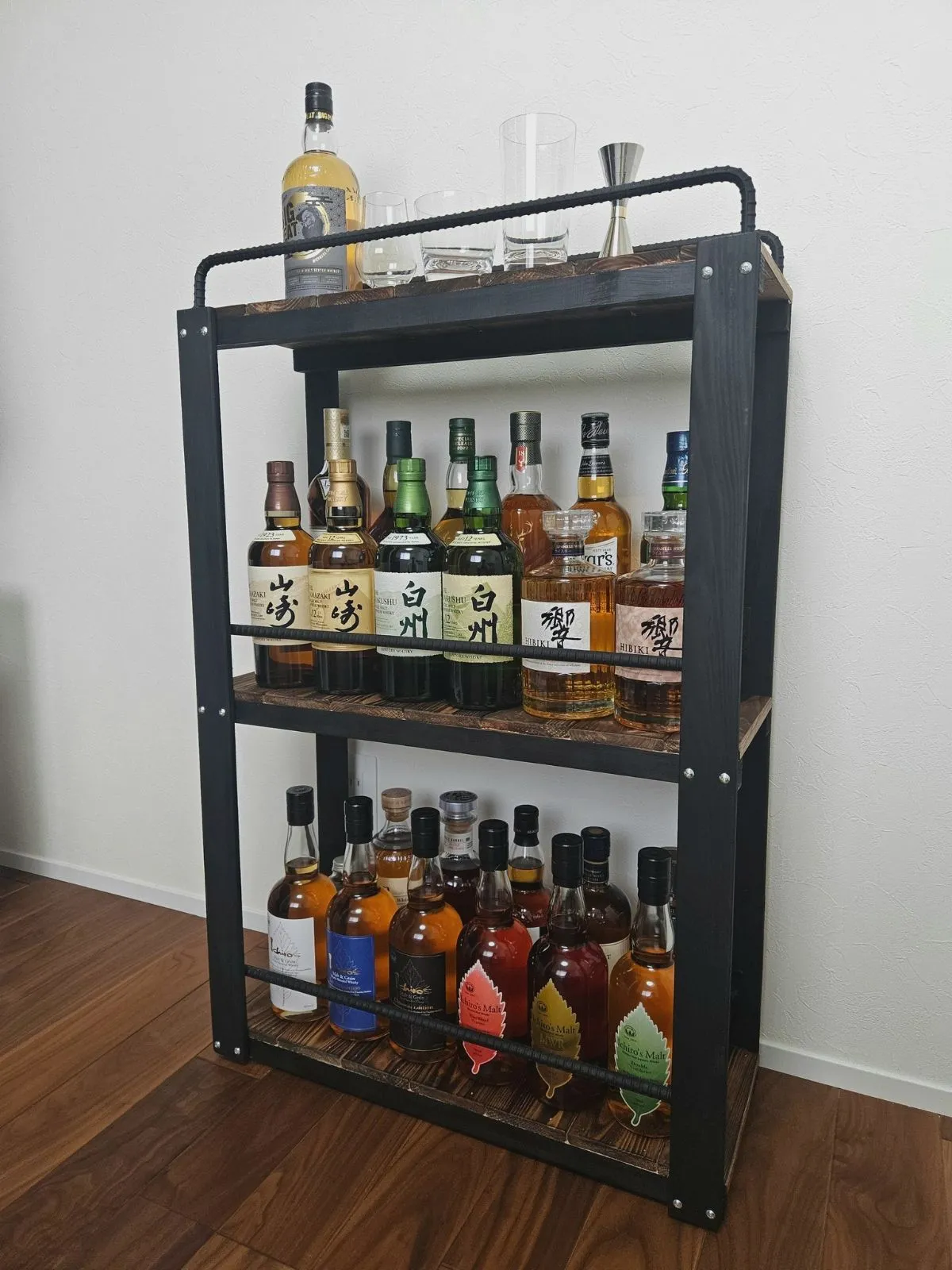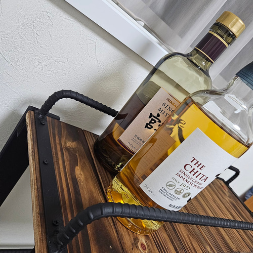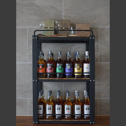 宮崎の桧香る ウイスキーラック アイアン×木製 ボトルラック グラススタンド 酒棚 バーインテリア おしゃれ 男前雑貨 棚・シェルフ・ラック REXXindustrial 通販 18989655Creema クリーマ。