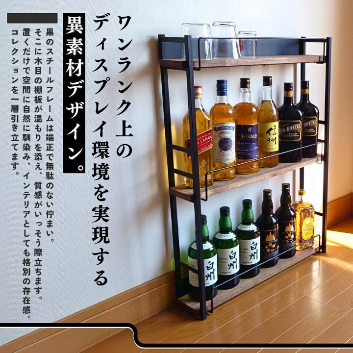 楽天市場 アンティーク調ウイスキーラック奥行13cm 隙間収納 スリム 転倒防止金具付 落下防止 ディスプレイ 酒棚 お酒 ラック ウイスキーウィスキー 700ml ワイン 日本酒 瓶 ブラック カウンター下 棚 リビング シェルフ オープンラック スチール製 ラバーウッド。