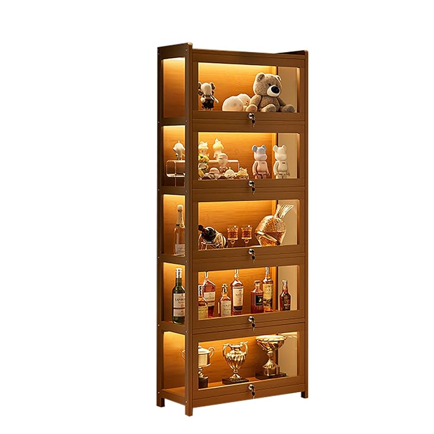 Amazon.co.jp: DKPLOE 酒棚 ディスプレイ 光とともに ロック付き ウイスキー 棚 落下防止 竹素材 ワインバーキャビネット 大容量多層収納ラック 密閉型 3面透明 酒類貯蔵ロッカー スペースを節約する お手入れ簡単 アクリルキャビネットドア 家庭用および業務用に適し。