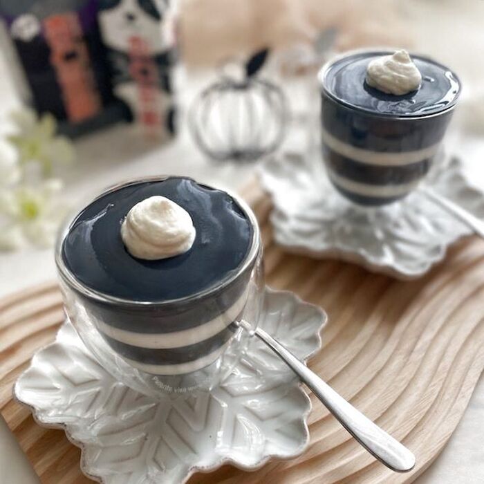 ハロウィンにも!カルディのパンダ杏仁豆腐でモノトーンスイーツ。