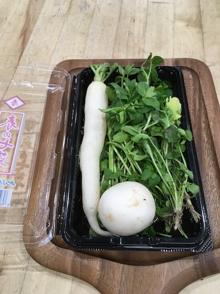 お正月 の縁起物春の七草下町 ゆかりにこだわった亀戸大根金町小かぶ を使用しています。七草 は、せりなずなごぎょうはこべらほとけのざすずなすずしろ植重農園江戸川区えどがわ江戸川散歩edomonoedogawatokyojapan。