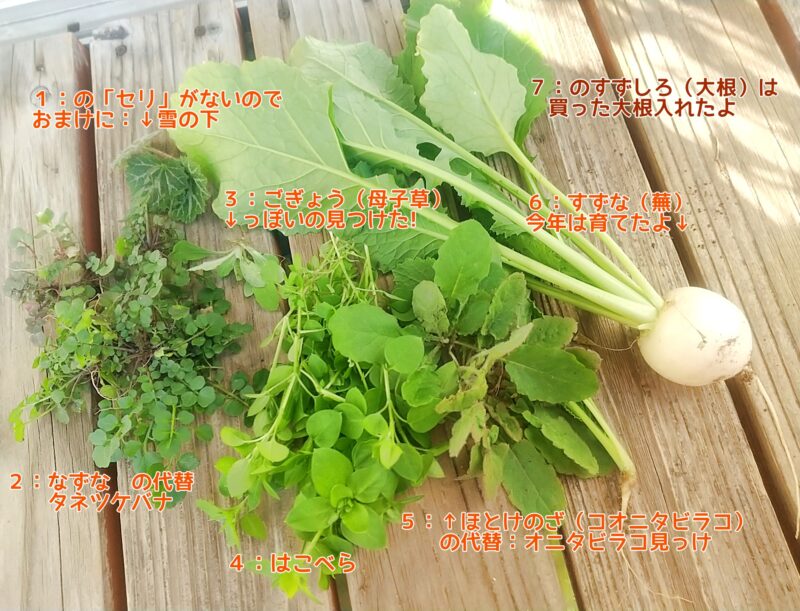 息子がおかわり!春の七草粥 七草の見分けかた。
