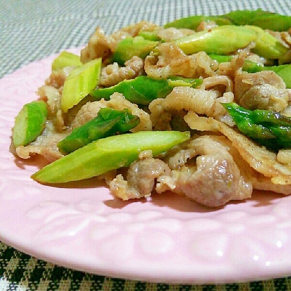 かんたん♪アスパラガスと豚肉の塩コショウ炒め。