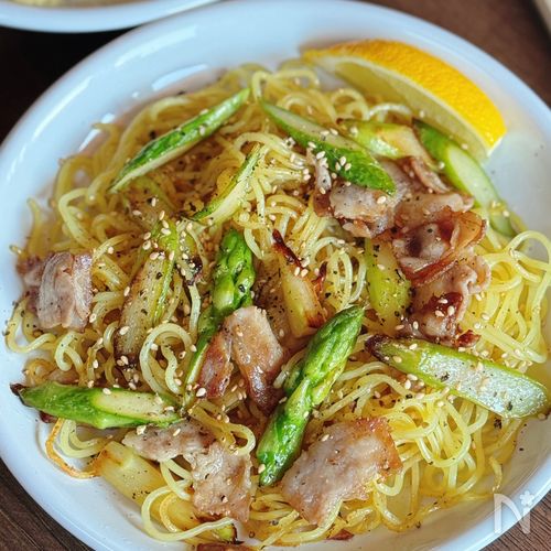 アスパラと豚バラのネギ塩レモンソテー簡単やみつき。