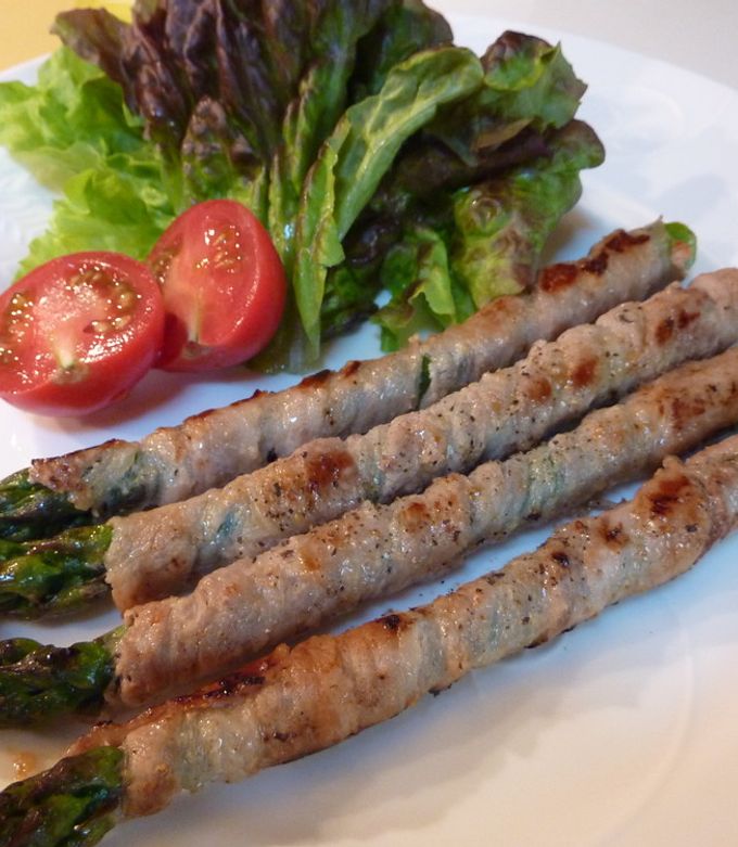 アスパラガス 豚バラ 塩 (425 無料写真)